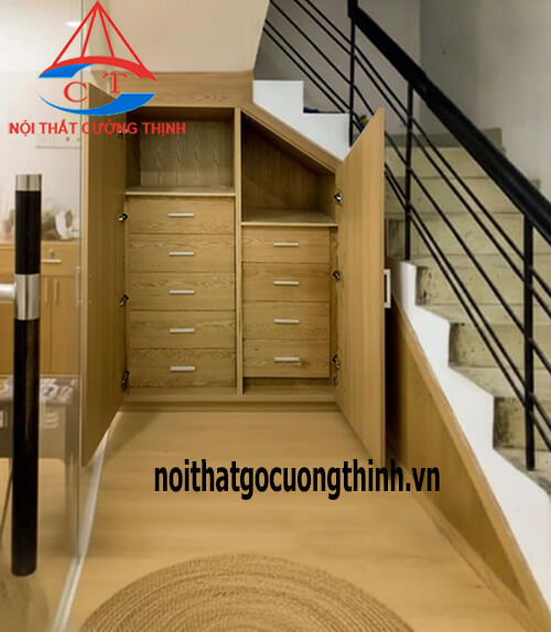 Xưởng gỗ Cường Thịnh chuyên thiết kế đóng tủ cầu thang theo yêu cầu tại TP.HCM. Sản phẩm chất lượng và độ bền cao, thi công gọn gàng, sắc nét, làm trực tiếp tại xưởng nên giá tận gốc, tiết kiệm chi phí.