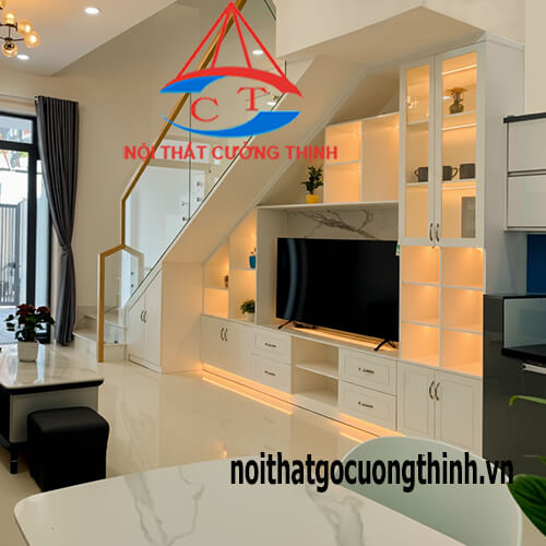 Ở nhà ống, chiếc tủ nhỏ gọn là nơi cất giày dép ngăn nắp. Trong phòng khách, nó trở thành tủ rượu gầm cầu thang đẹp hay tủ tivi gầm cầu thang, làm tăng giá trị thẩm mỹ ngay khi bước vào nhà.