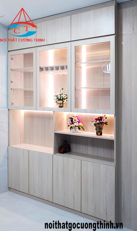 Tủ gỗ công nghiệp kịch trần đựng rượu sang trọng